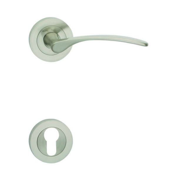 tradičních interiérů. Spojení tenké kliky s kulatou rozetou však působí