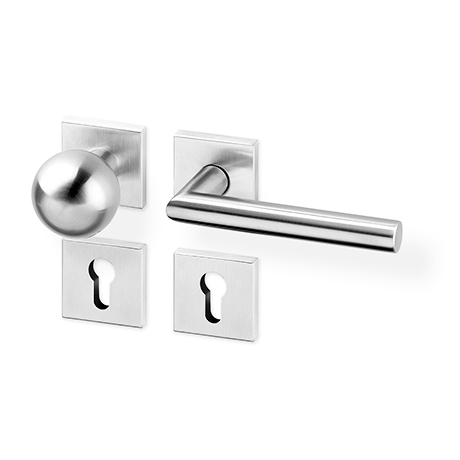 Nerezové kování s novou technologií ložiskových rozet. Vhodné pro zátěžové prostory se zvýšeným pohybem veřejnosti, jako jsou veřejné toalety, správní budovy, stadiony. Pro svůj tichý chod jsou vhodné i pro byty, domácnosti a kanceláře. Materiál: nerez AISI 304.